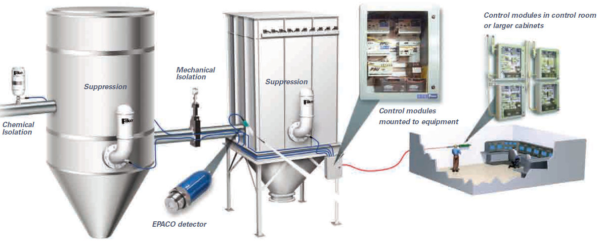 The EPACO detection and control system interfaces with Fike’s Suppression and Isolation systems to provide